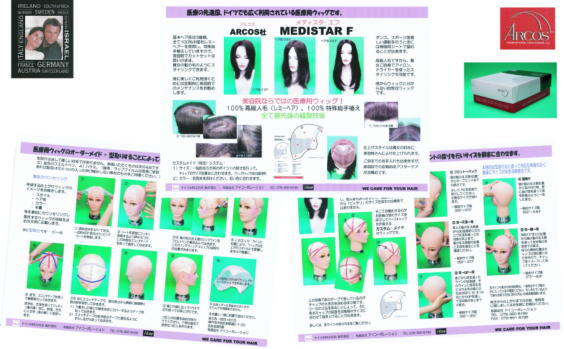 ドイツで長い実績を誇るARCOS社の医療用ウィッグです。特徴はお客様の頭の大きさに合わせてキャップを作るのでピタリフィットします。また、ノンカットの高級人毛を使用したウィッグですので美容院でお客様の要望に合わせてカット、スタイリングすることにより個々のお客様にあったオリジナル・ウィッグが提供できます。